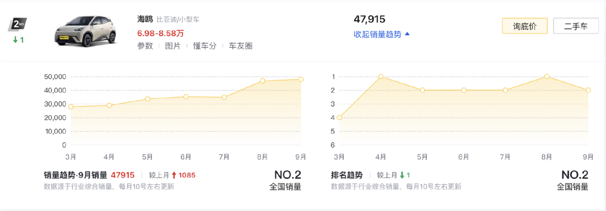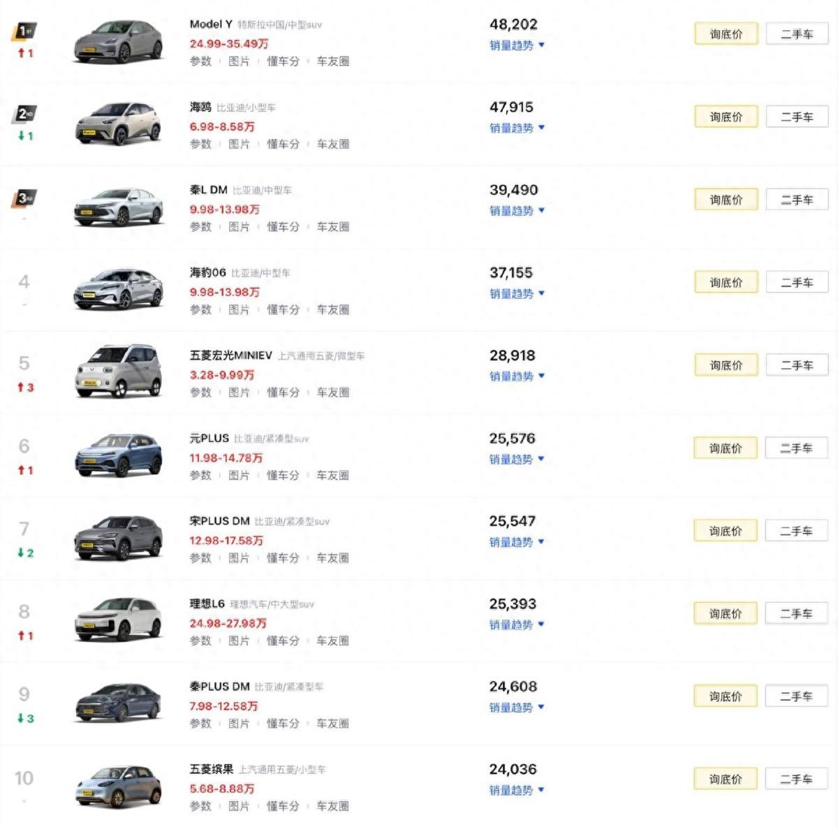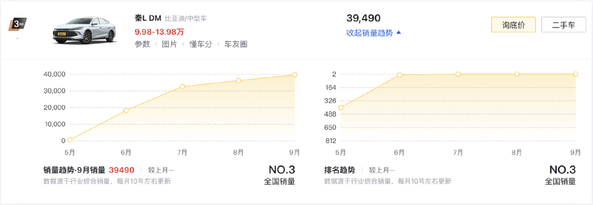 比亞迪秦PLUS DM-i(第九名/24608輛)在秦L、海豹06上市后,不再擁有那種統治級數據,但就在它所在的細分市場中,依舊沒有其它產品能威脅到它的地位。