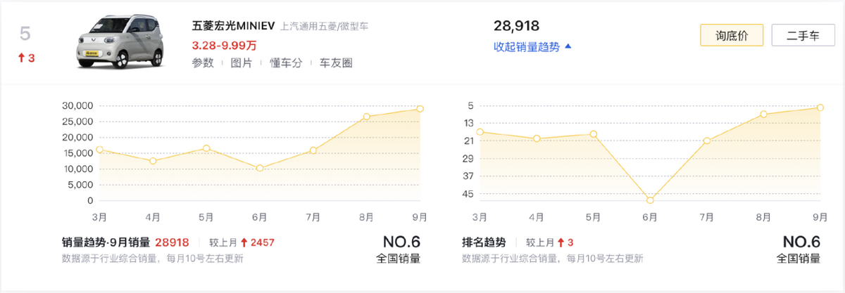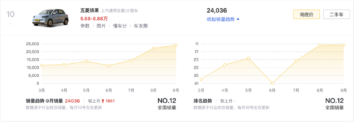 五菱在這份榜單中,憑借著五菱宏光MINIEV(第五名/28198輛)與五菱繽果(第十名/24036輛)拿下了兩個份額,兩者均瞄準有著城市通勤代步需求的用戶,前者適合基礎的單人、雙人代步,而且不斷強化的設計與內飾,車輛的綜合乘坐是在持續優化的;后者則主打小家庭出行,并能通過多樣續航選項,讓車輛兼顧更舒適愜意的短途出游需求,從Ling OS靈犀互聯到下沉式后備廂,它們在所在細分市場中,都能展示出十足的核心優勢。